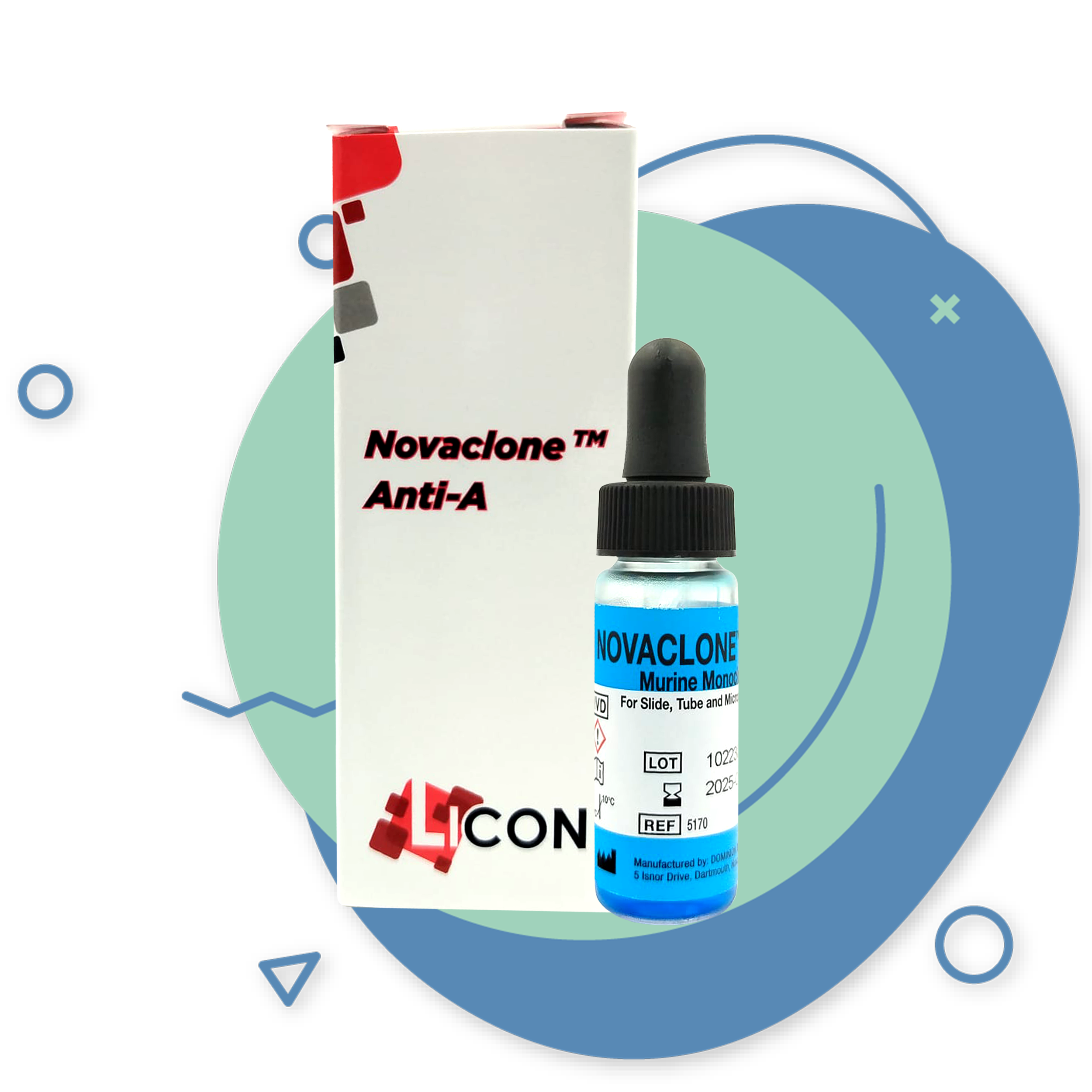 Reactivos para análisis de grupo sanguíneo basado en el principio de hemaglutinación directa “ANTI A”.