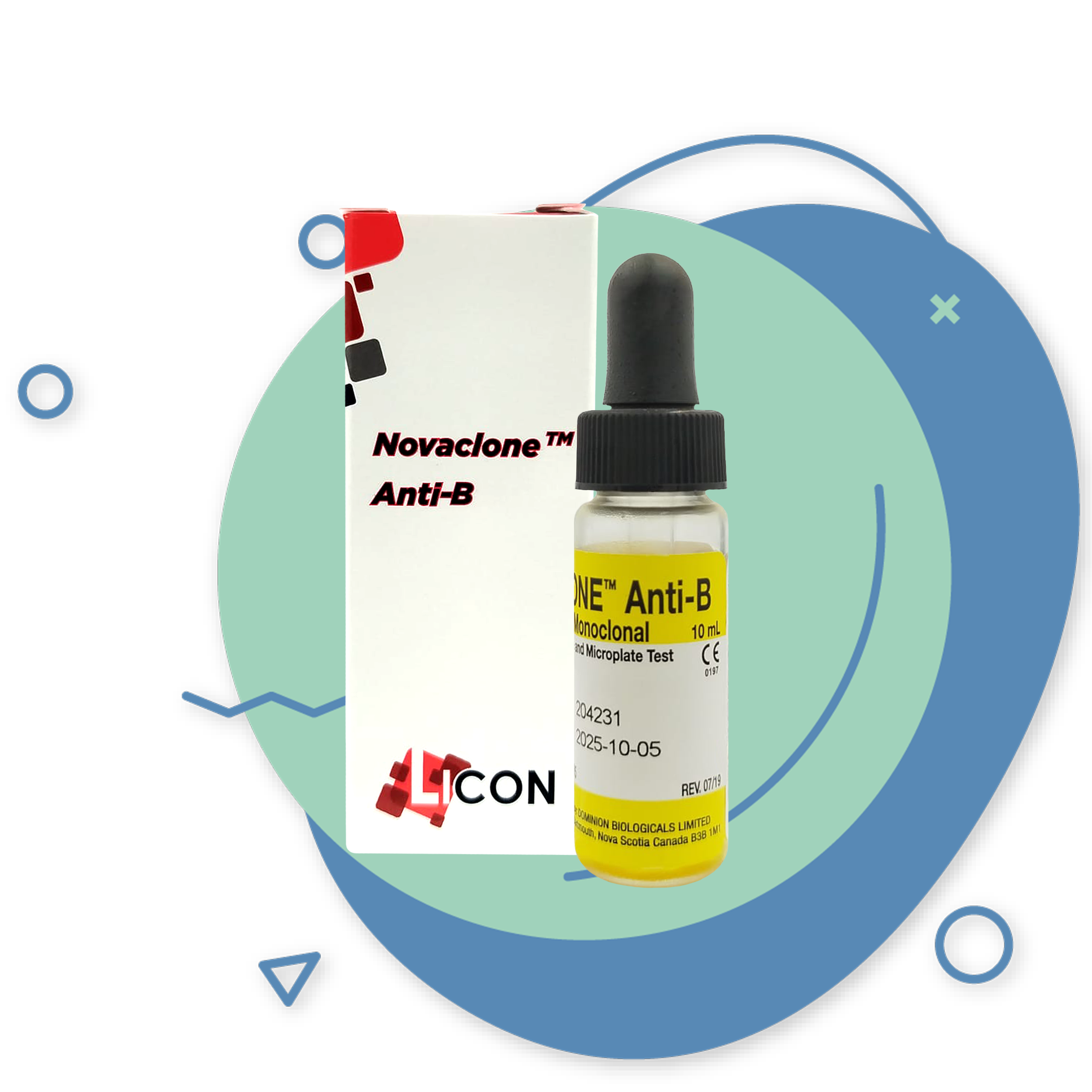 Reactivos para análisis de grupo sanguíneo basado en el principio de hemaglutinación directa “ANTI B”.